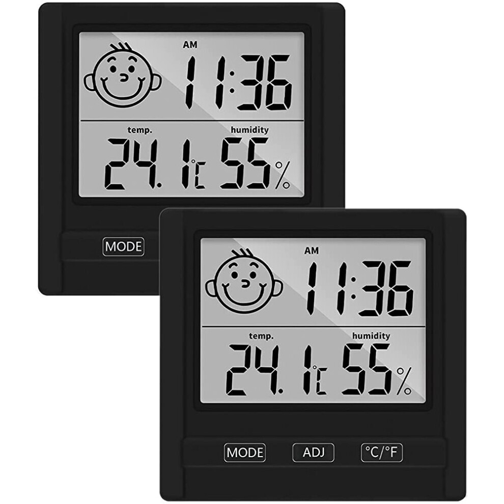 Set of 2 mini indoor digital thermometers-hygrometers with time display
