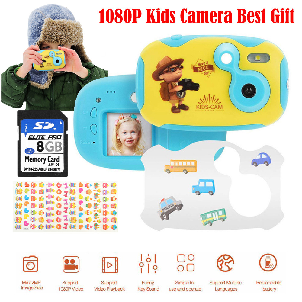 1080P 1.44" TFT Digital Kids Camera Video Recorder Best Child Gift W/ 8G SD Card