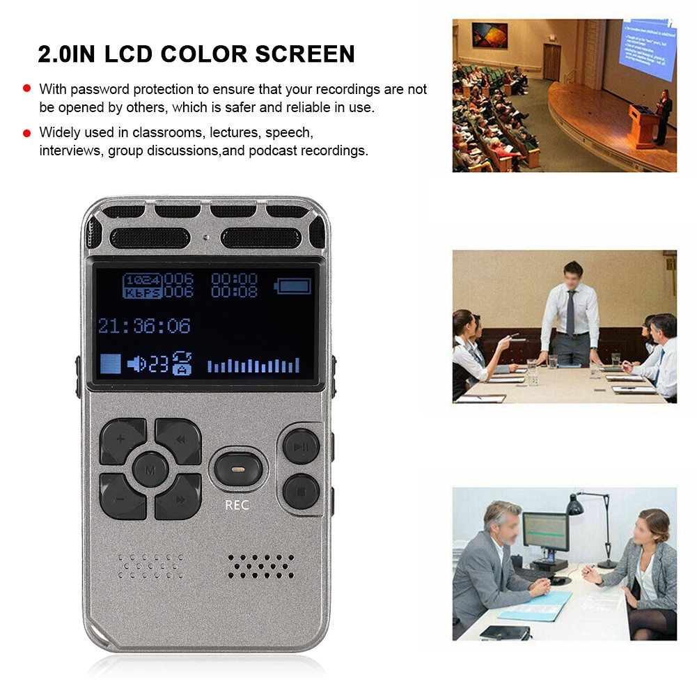 4-32GB Optional Digital Voice Recorder with Playback, Dual Mic Stereo Sound Professional Noise Reduction Password Function MP3 Recorder for Lecture Interview (8G)