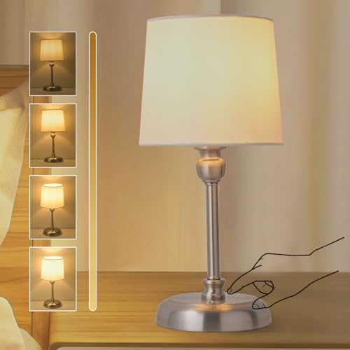 Touch Dimmable Table Lamp Chrome & White Fabric Shade Modern Bedside Desk Light