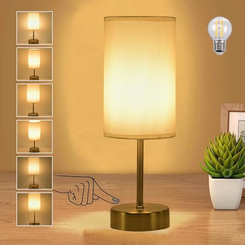 QJRGUY Touch Desk Small Bedside Lamp With USB C Charging Port, Three-Way Dimmable, Bedroom Office Suitable for living room, dormitory, office,(White Shade+Champagne Gold Base)