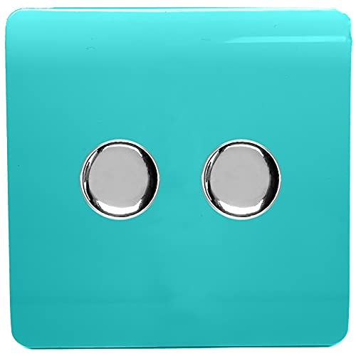 Trendi Artistic Modern Glossy Tactile 2 Gang 2 Way 120w LED Dimmer Switch Bright Teal