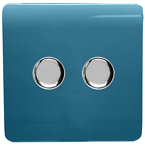 Trendi Artistic Modern Glossy Tactile 2 Gang 2 Way 120w LED Dimmer Switch Ocean Blue