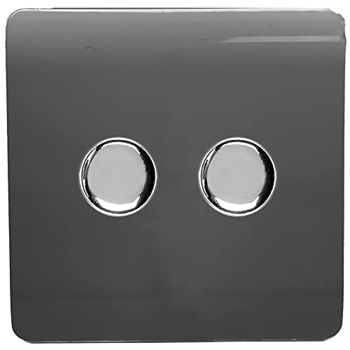 Trendi Artistic Modern Glossy Tactile 2 Gang 2 Way 120w LED Dimmer switch Charcoal