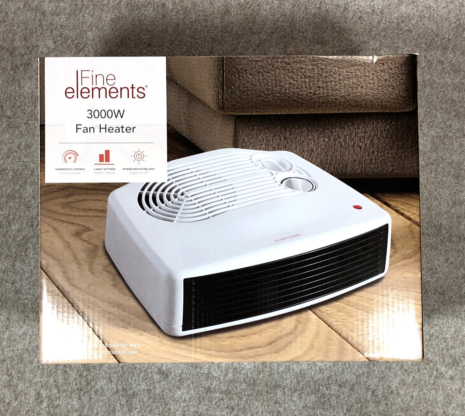 Fine Elements 3KW Flat Fan Heater Portable Thermostatic Control 2 Settings