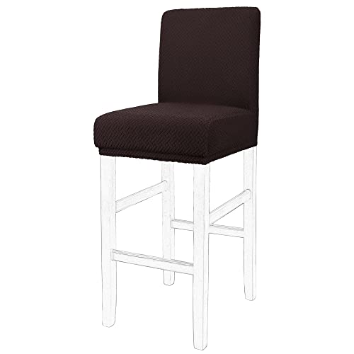 PiccoCasa Stretch & Removable Dining Chair Covers for Pub Counter, Set of 1 Bar Stool Covers with Elastic Bottom - Spandex Short Back Chair Covers Protector Dark Brown