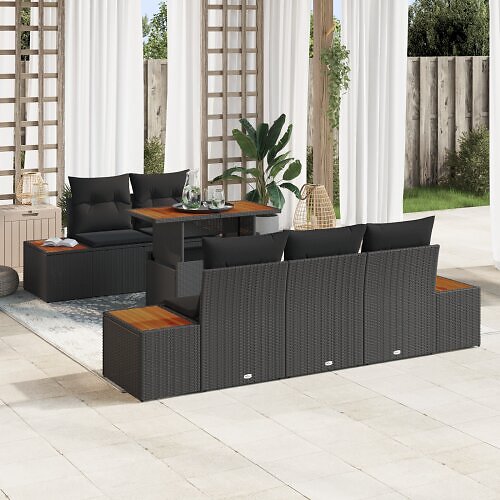 vidaXL Lounge Set 6 Pieces with Cushions Black Poly Rattan Acacia