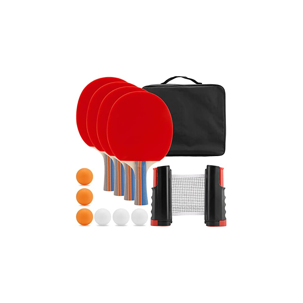 Table Tennis Set, Ping Pong Ball Set, 4 Bats and 6 Balls, Portable Ping Pong Paddle Sets with 175cm Extendable Net & Carrying Bag for Dining Table,