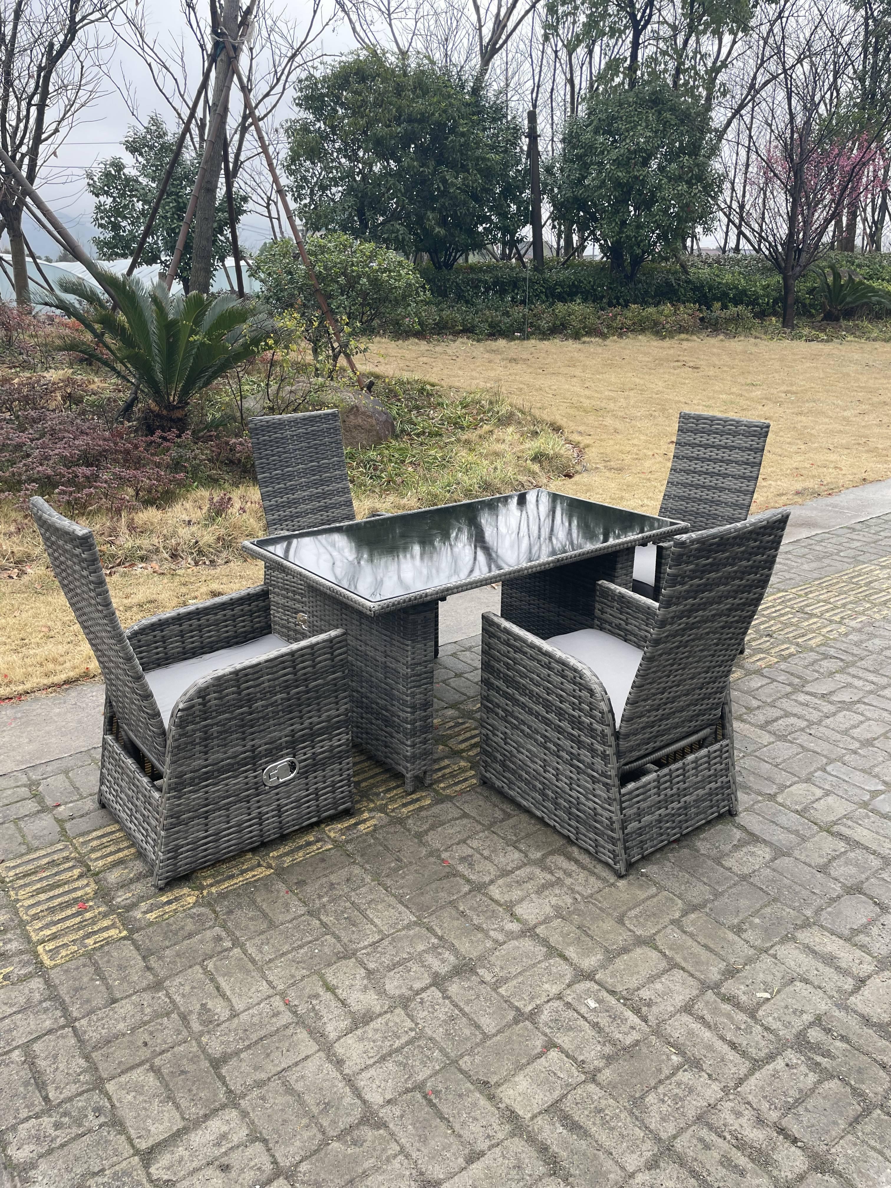 Fimous Outdoor PE Wicker Rattan Garden Furniture Reclining Chair And Table Dining Sets 4 Seater Square Table