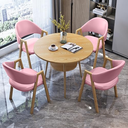 Modern Office Dining Set: Round Table and Four Chairs for Reception, Business, Living Room, Hotel, Dessert Shop