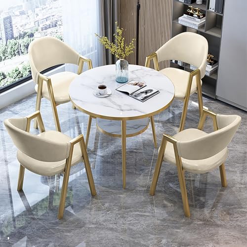 Marble Table Set, Modern Marble Coffee Table and Chair Set for Living Room and Balcony Dining Table with Four Chairs Office Reception Desk and Chair Set Meeting Room Round Table Set for Beau