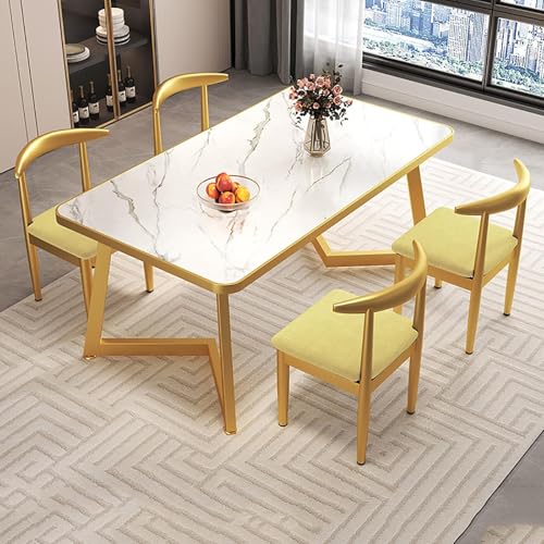 Built-in Chair Table, Dining Table Set One Table Four Chairs, Office Reception Room Club Table, Restaurant and Cafe(E,120x80x75cm)