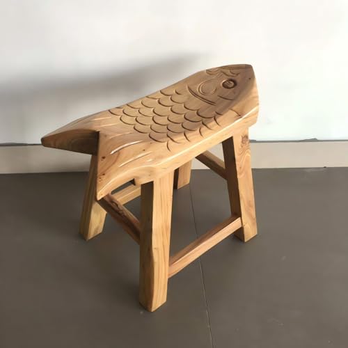 40/46/55 Cm Wooden Stool, Farmhouse Step Stools for Adults, Small Dining Table/Entryway Bench Seat with Fish-shaped Scale Design, Foot Stool End Of Bed Bench for Bedroom(Natural,46 * 18 * 40 cm)