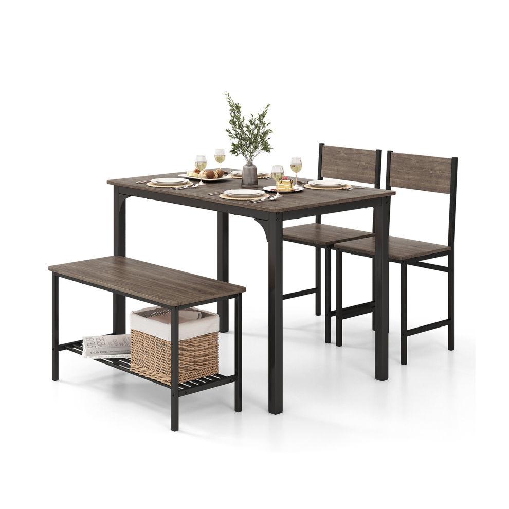 Dining Table & Chair Set 4-Pieces With 2 Chairs 1 Bench & Storage Rack