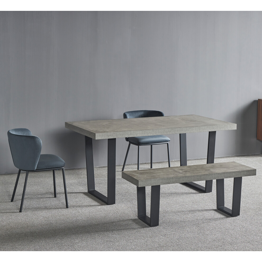 Dining Room Set, Grey Conrete Effect Dining Table, Chairs & Bench Set, Vonhaus
