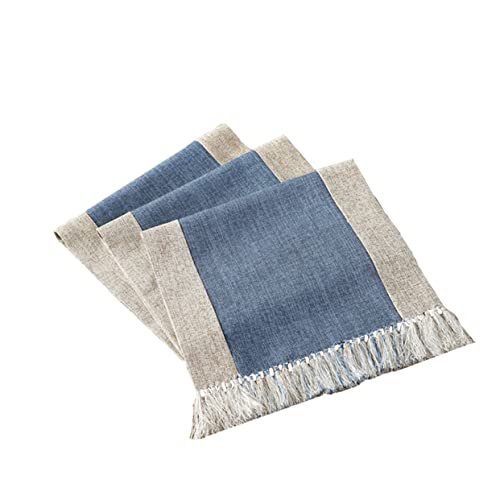 Cabilock Retro Cotton Tassel Tablecloth Blue Table Runner Dining Table Cover Home Decor Easy Clean