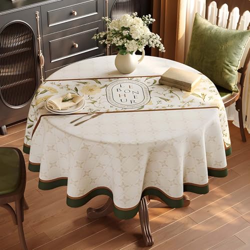 GAOCUNBING Round Table Cloth, Wrinkle-Free Dining Table Cover, Vintage Toile Table Cloth French Table Cover for Kitchen Restaurant Tabletop Decoration H,130cm