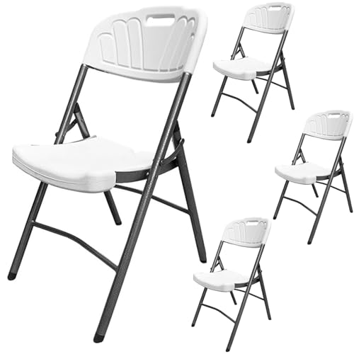 JS Ellie Set of 2/4/6 white folding chairs with backrests, suitable for outdoor use, home gatherings, dressing tables, dining rooms, offices, and kitchen islands A 4-piece set