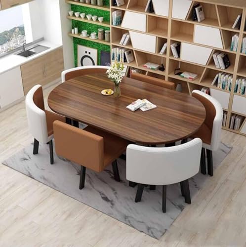 8-Person Dining Set, Piece Modern Dining Set with Round Table and 6 Chairs Small Office Conference Room Tables and Chairs Kitchen Lounge Living Room Furniture Meeting Room Table Set for 8