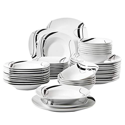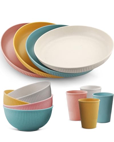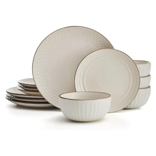 LLSHQ Ceramic 12-Pieces Dinnerware Sets Dish Plates and Bowls Sets for 4 Dinner Salad Dessert Plates
