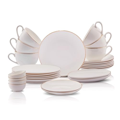 Karaca Globe Porcelain Dinner Set for 6 People - 24-Piece Crockery Set with Plates and Bowls Set, Round Dinnerware Set & White Gold Dinner Set
