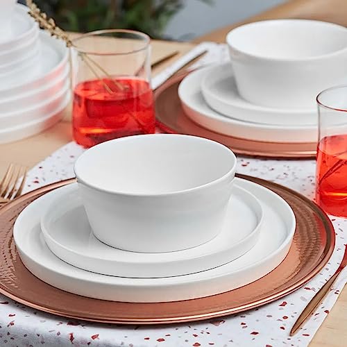 VEVOR Dinnerware Set, Service for 6 People, Round Plates and Bowls Sets, Scratch Resistant Ceramic Dinner Ware, Dishwasher and Microwave Suitable Kitchen Dishes, for Dessert Salad Soup Pasta, White