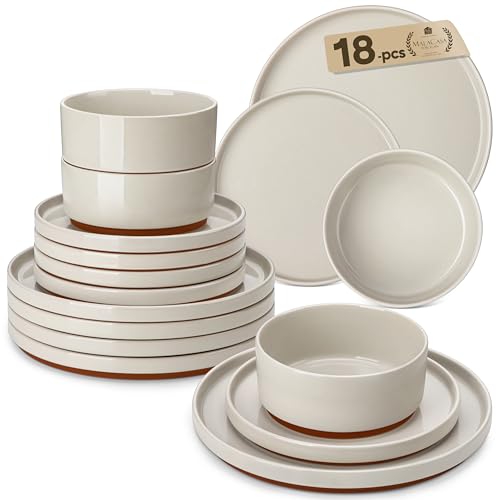 Homikit Dinner Sets for 6 People, 18-Piece Reactive Glaze Plates and Bowls Set, Elegant Dinnerware Stoneware for Kitchen, Healthy & Scratch Resistant,
