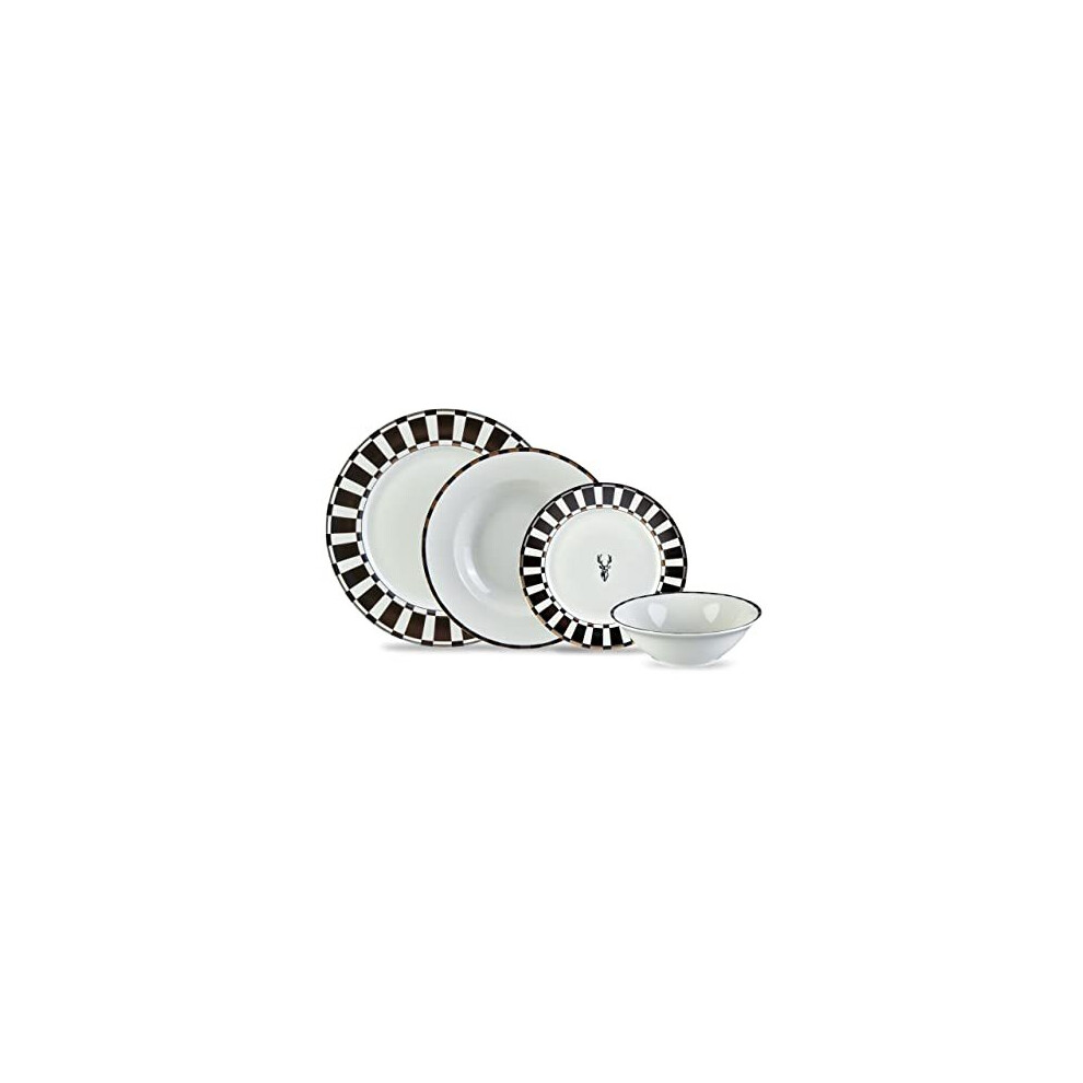 Karaca Aries Black 24 Piece Dinner Set for 6 People, Stylish, Elegant, Black White Borders, Gold and Silver Accents, Dinner Set Porcelain
