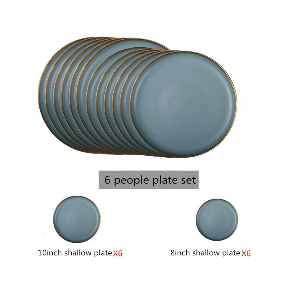(a-6 people plate set) Matte Gilt Rim Ceramic Tableware Set with Spoon Cereals Bowl Dessert Plate Steak Plate for Dinner Gift Plates and Bowls Set