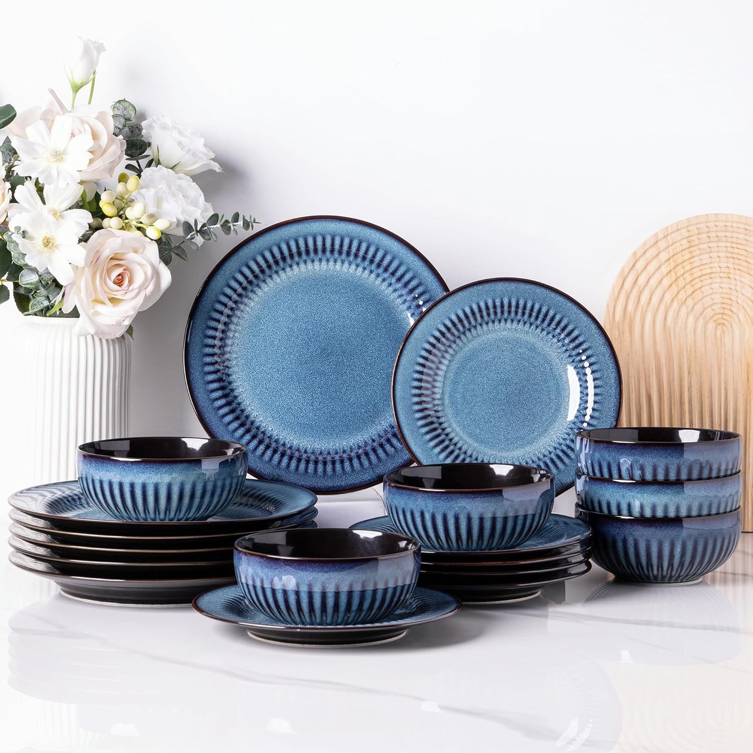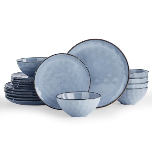 Homikit Dinner Sets for 6 People, 18-Piece Reactive Glaze Dinnerware Stoneware Set, Kitchen Plates and Bowls for Home Dinner Camping, Scratch Resistant, Dishwasher & Microwave Safe, Nebulas Blue