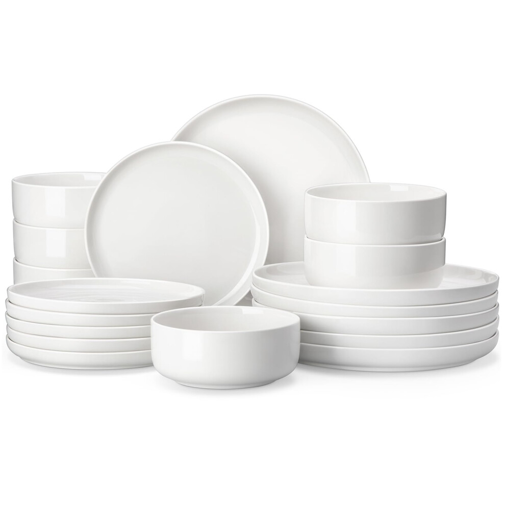 MALACASA 24-Piece Plates and Bowls Sets, Porcelain White Dinner Sets for 6 People Chip Resistant Crockery Set with Dinner Plate/Dessert Plate/Soup Bowl/Cereal Bowl, Series Luna