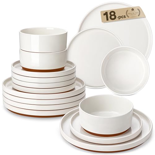 MALACASA Plates and Bowls Sets, 18 Pieces Modern Stoneware Dinnerware Set for 6 Kitchen Dinner Set Ceramic Dishware Dishes Set Microwave and Dishwasher Safe, White, Series Tara