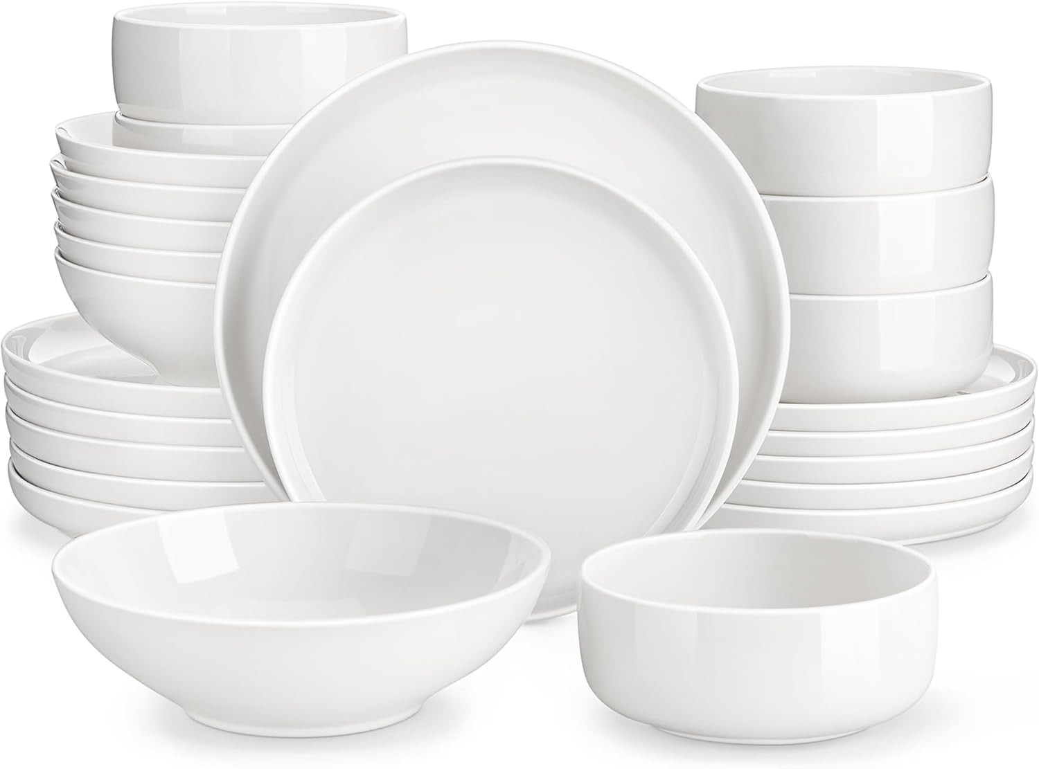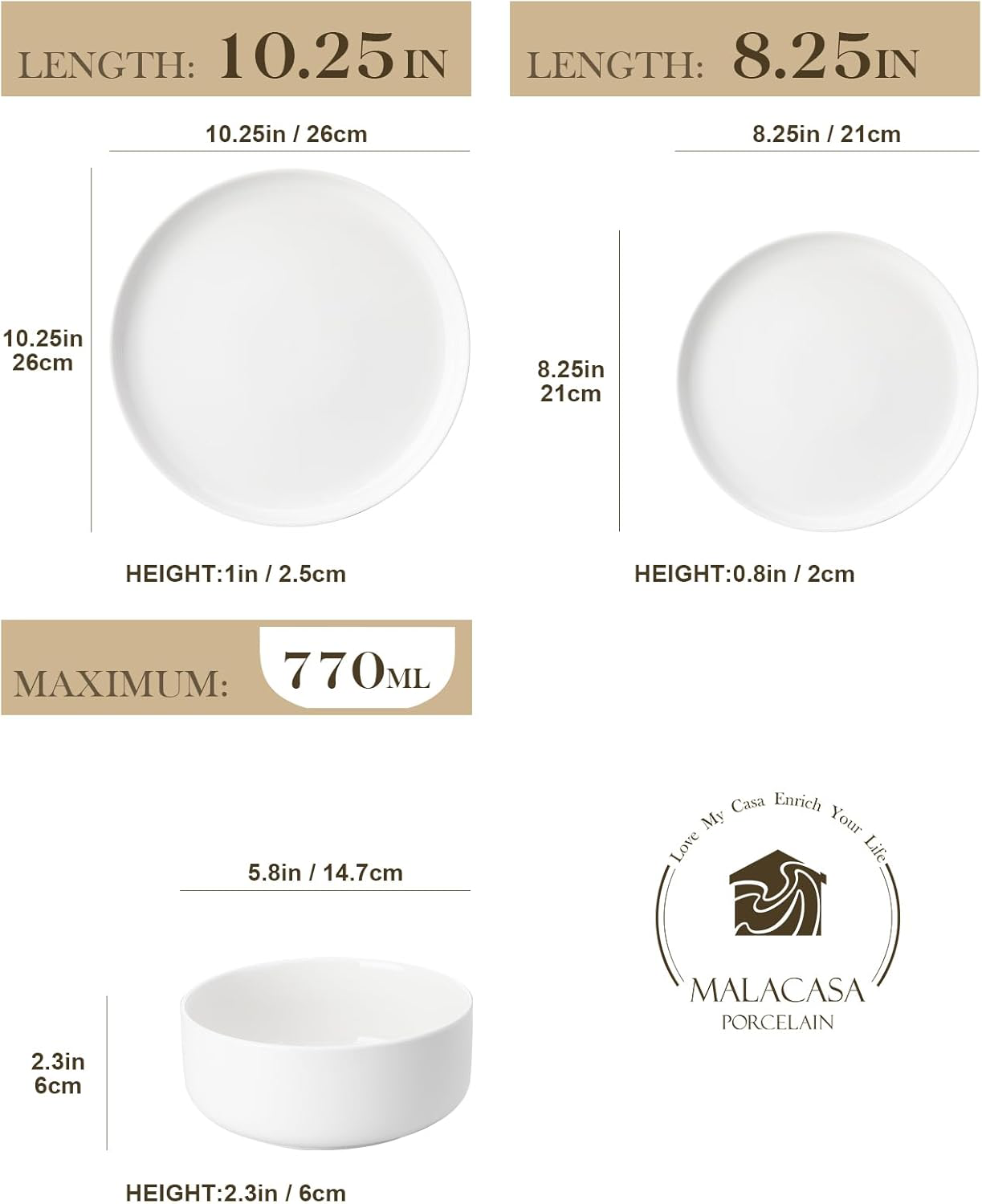 MALACASA 24 Piece Plates and Bowls Sets, Porcelain White Dinner Sets for 6 Peop