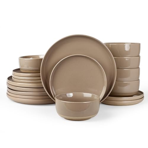 vancasso ANYA 24 Piece Plate Set, Crockery Sets for 6 People, Include Ceramic Dinner Plates, Dessert Plates, Soup Bowls and Cereal Bowl, Dishwasher and Microwave Safe, Brown