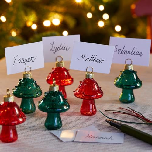 Talking Tables 6 x Glass Mushroom Table Place Card Holders Christmas Decorations – Whimsical Glass Mushrooms for Christmas Dinner, Wedding, Party Tables – Multi-Use Decor – Size: 7cm x 4.5cm