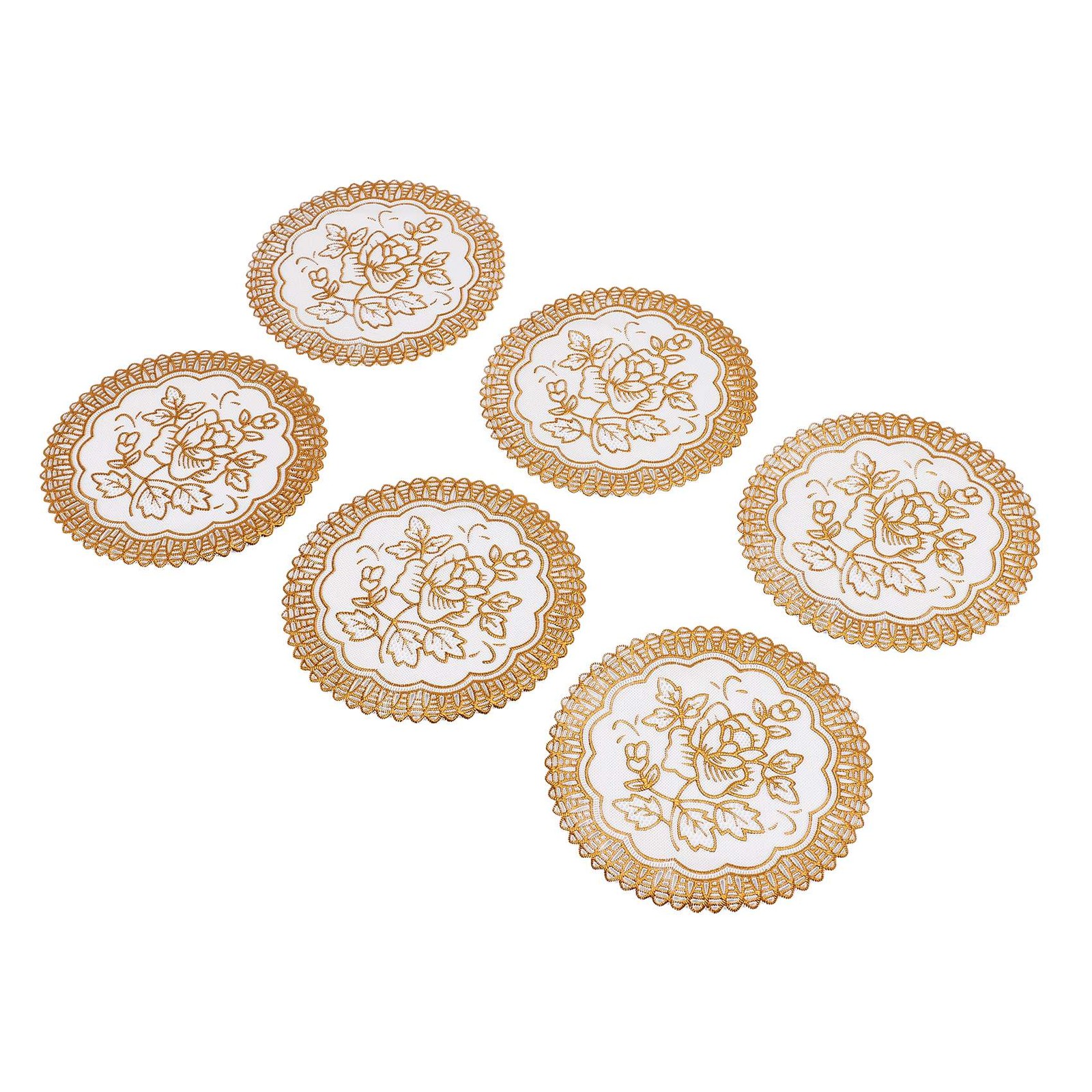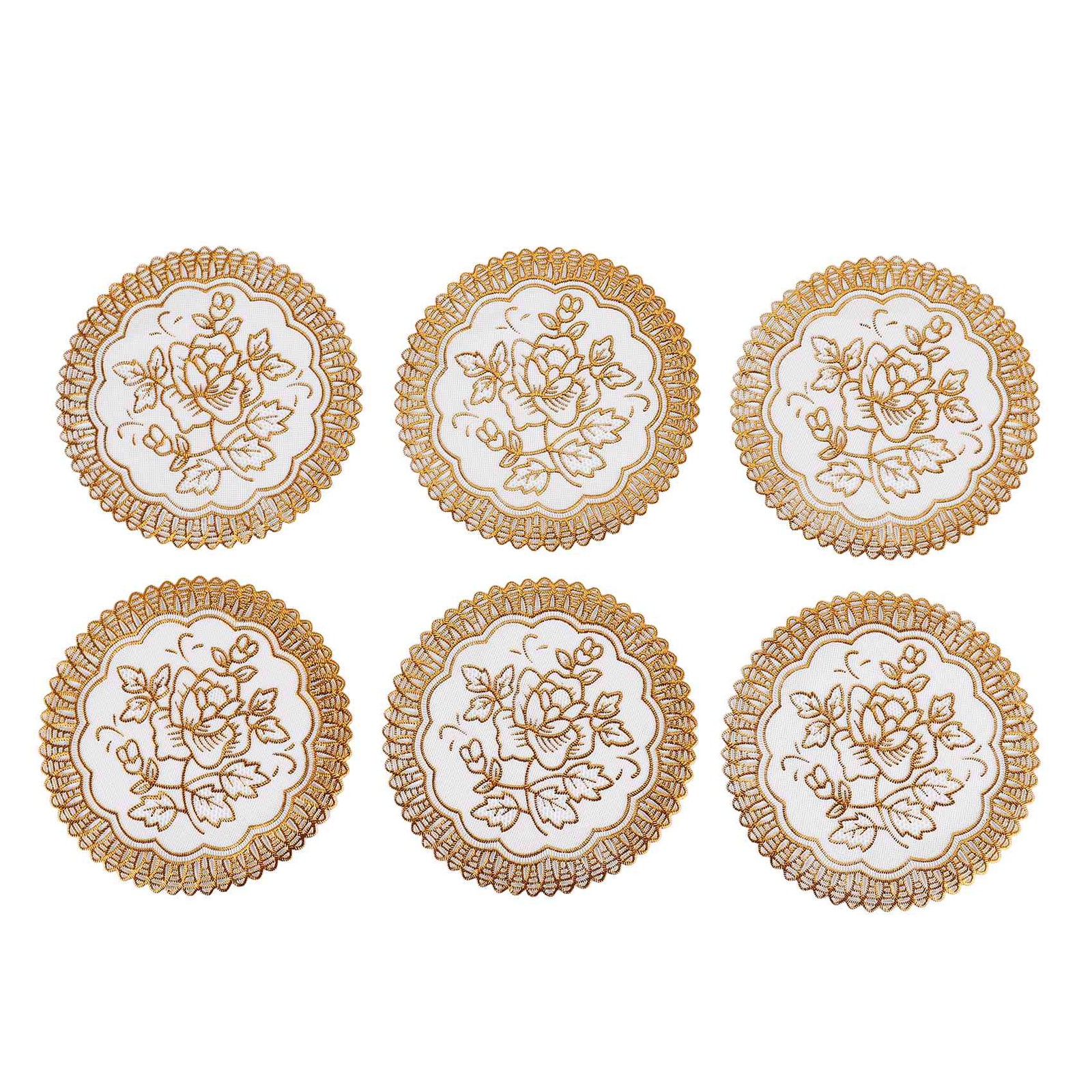 6 Exquisite Gold-tone Flower Dinning Table COASTERS SET H6W29097