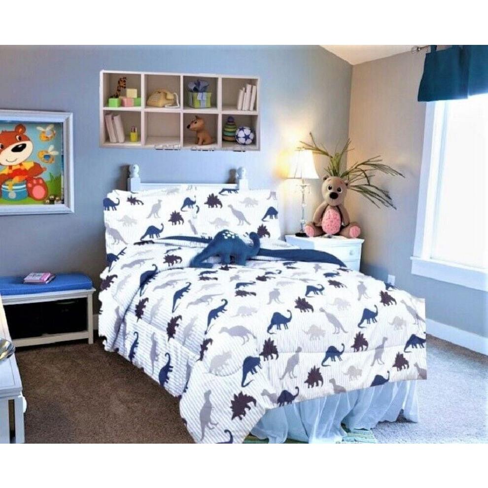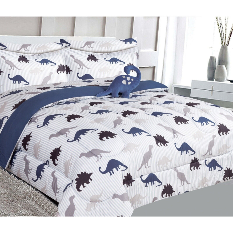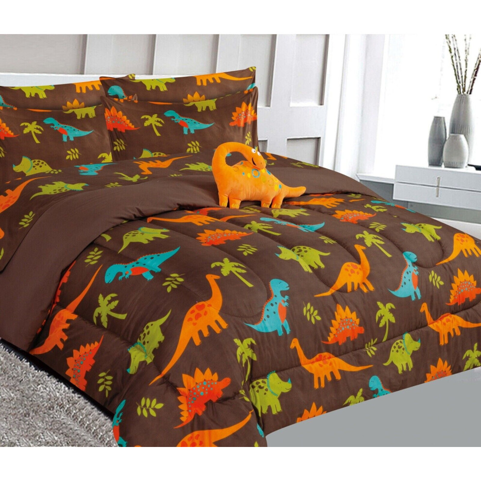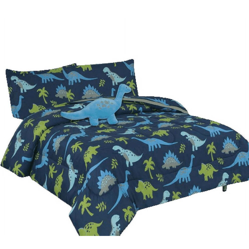Dinosaur Print Twin Bed in Bag - Comforter, Sheet Set, Pillow & Plush Toy, Super Soft, Easy Wash, Boy Girl Kids Bedding Decor