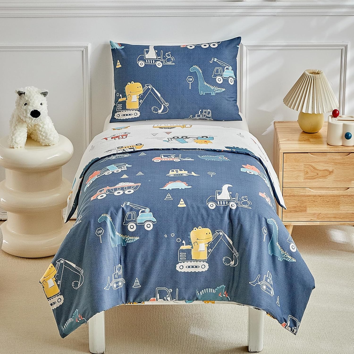 DuShow Cotton Toddler Bedding Set,Dinosaur Cot Bed Duvet Cover Set For Boys,Rev