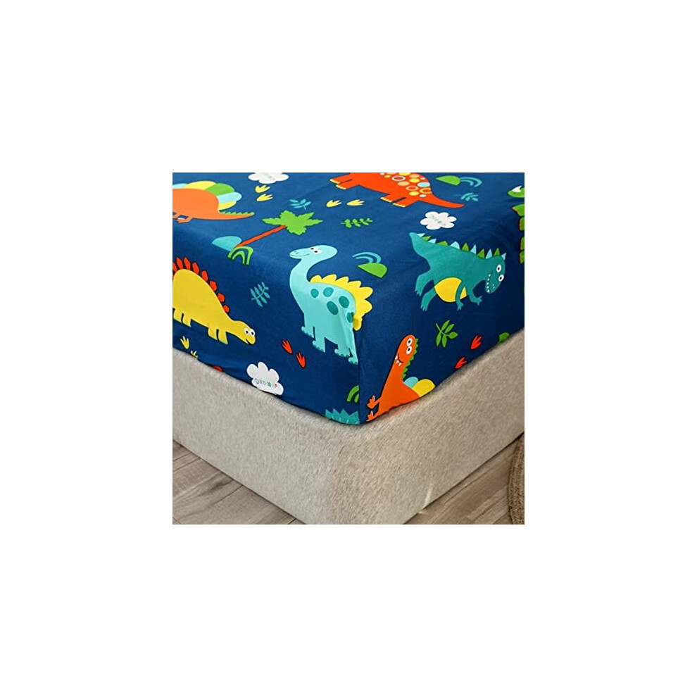 Chickwin Dinosaur Single Bed Fitted Sheet -30cm Deep, Cute Cartoon Animal Fitted Sheets for Kids, Soft Brushed Microfiber Easy Care Fade Resistant Breathable Fitted Sheet (90x200cm)