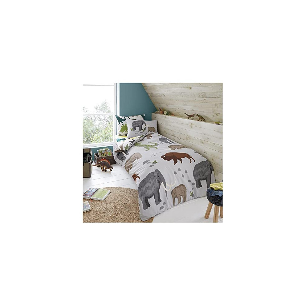 Lions Dinosaur Bedding Bed Duvet Cover Set with Pillowcase, Reversible Boys Quilt Covers (Wolly Mammoth, Double)