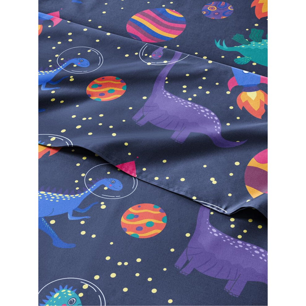 Kids Full Size Space Dinosaur Bed Sheets - 4 Piece Dinosaur Sheet Set - Space Print Bedding - Soft Cute Cozy Breathable & Machine Washable - Color