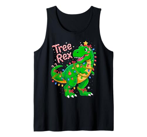 Tree REX Christmas Costume T-Rex Dinosaur Xmas Light Family Tank Top