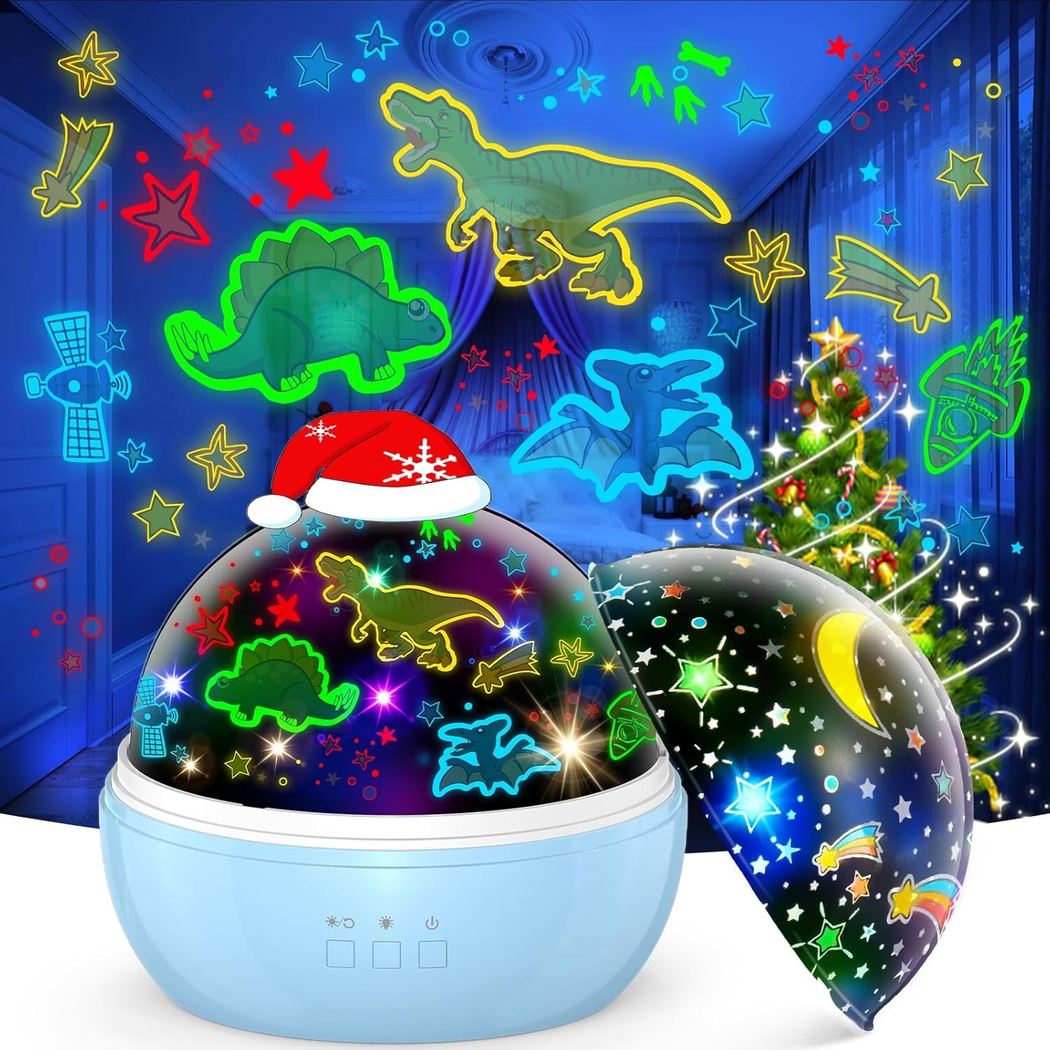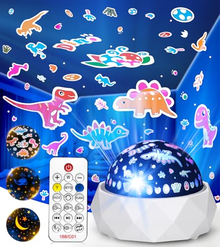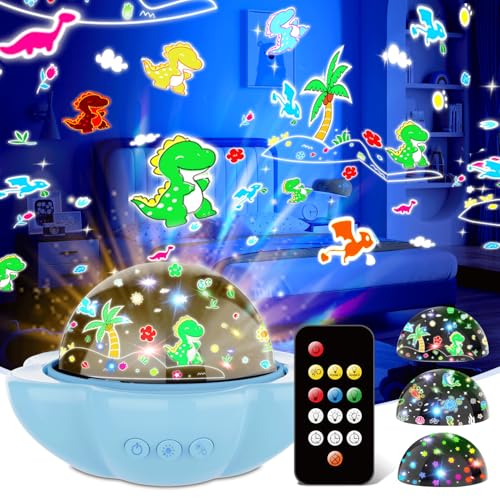 Baby Night Light Projector, Dinosaur Night Light for Kids with 3 Projection Theme 360°Rotate Baby Night Lamp with Remote Timer, Party Decor Dinosaur Toys for Boys Birthday Gifts Xmas Stocking Fillers