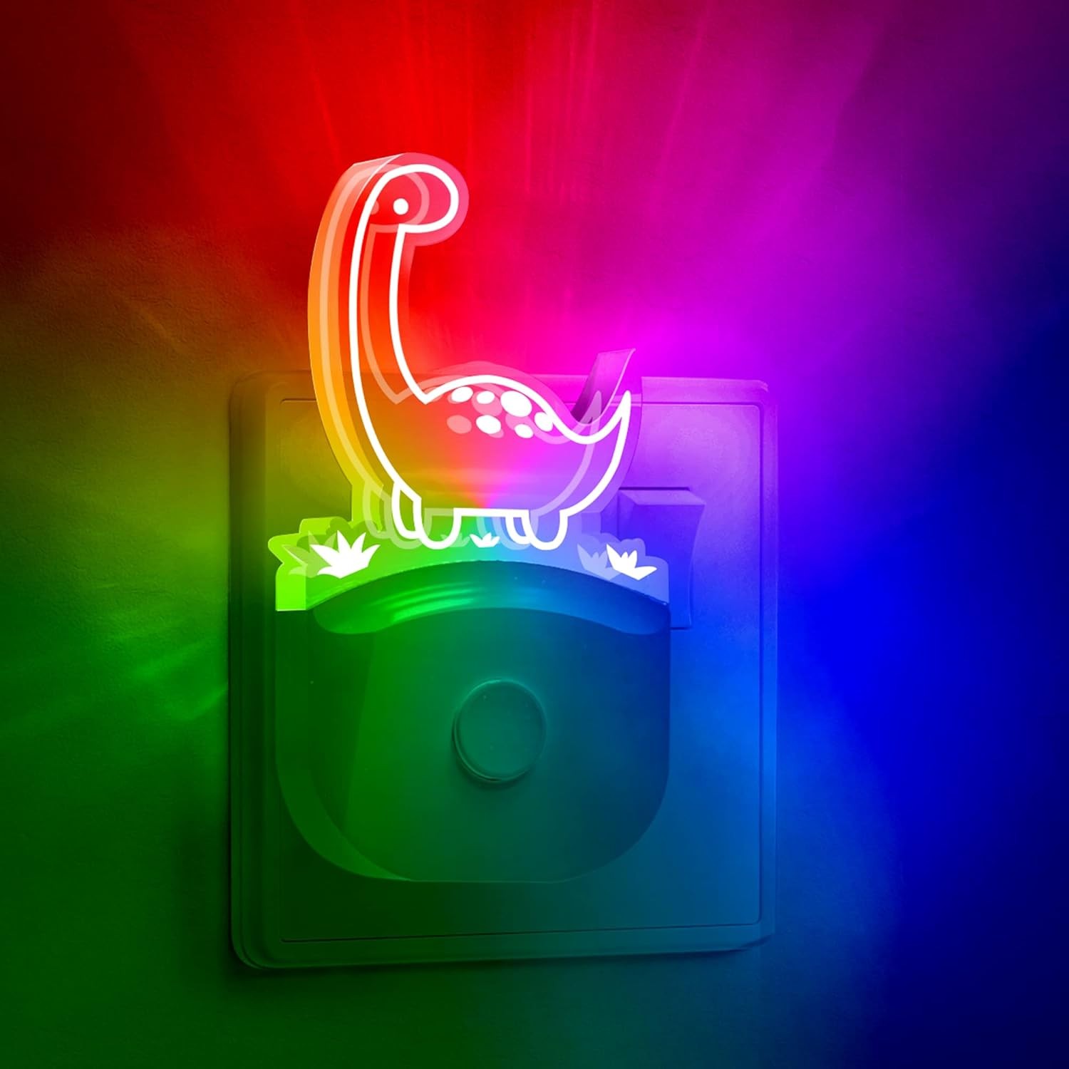 Emeritpro Dinosaur Night Light Plug in Wall, Dusk to Dawn Sensor, Warm White+RG