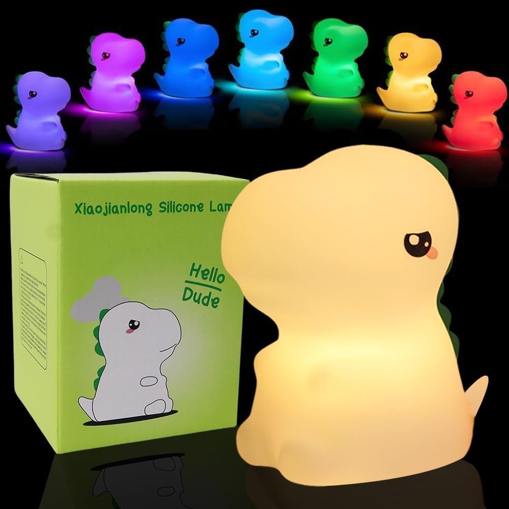 Dinosaur Night Light, LED Soft Silicone Light 7 Colors Lamp Rechargeable Touch