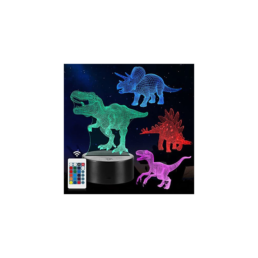 Dinosaur Night Light,3D Dinosaur Lamp Dinosaur Gifts, with 16 Colour Changes and Remote Control, Gifts for Children from 3 4 5 6+ Years (4 PCS)