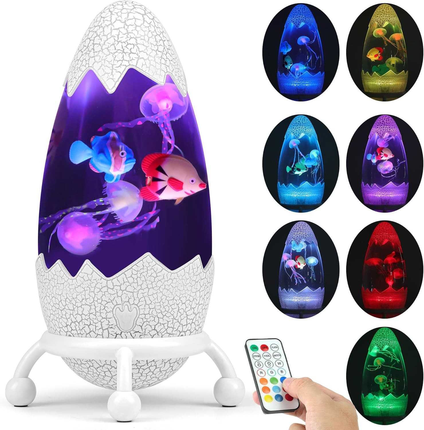 Dinosaur Egg Night Light –Glowing Jellyfish & Fish Table lamp with Cracked De
