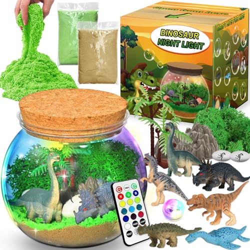 Dinosaur Toys for Boys Terrarium Kit, Novelty Light Up Dino Kid Crafts for 3 4 5 6 7 8 9+ Years Old Boys, Make Your Own Dinosaur Night Light with Timing Remote Control, DIY Creative Dino Toys