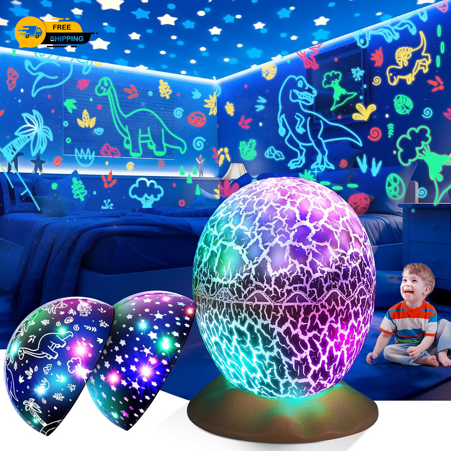Uxsjakjsd Dinosaur Egg Night Light Projector Star Projector for Kids USB Baby Nightlight Gift