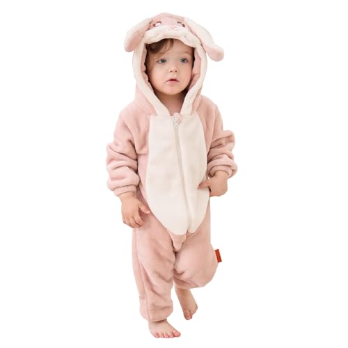 Boys Girls Baby Infant Romper Animal Pattern Unicorn Lion Bear Panda Bunny Bull Dinosaur Crocodile Onesie Pyjamas Sleepsuit Outfit Bodysuits Soft Fleece Extra Thickness (Bunny, 12-18 Months)